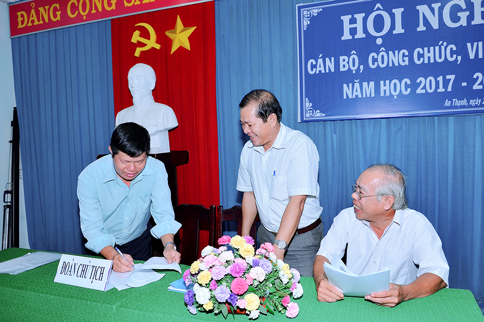 Hoạt động Giáo dục Hội nghị cán bộ công chức năm học 2017-2018 TTK 8 năm trước Ngày 28 tháng 9 năm 2017, trường THCS Tạ Thị Kiều đã long trọng tổ chức “Hội nghị cán bộ công chức năm học 2017-2018”. Hội nghị đã diễn ra trong không khí nghiêm túc, trang trọng và thành công tốt đẹp. Sau đây là một số hình ảnh của Hội nghị. Related posts Hội nghị Cán bộ Công chức năm học 2016-2017 TTK 9 năm ago Hội nghị Cán bộ Công chức năm học 2018-2019 TTK 7 năm ago Học sinh THCS, THPT được giảm 2 tuần học trong năm học 2020-2021 TTK 6 năm ago