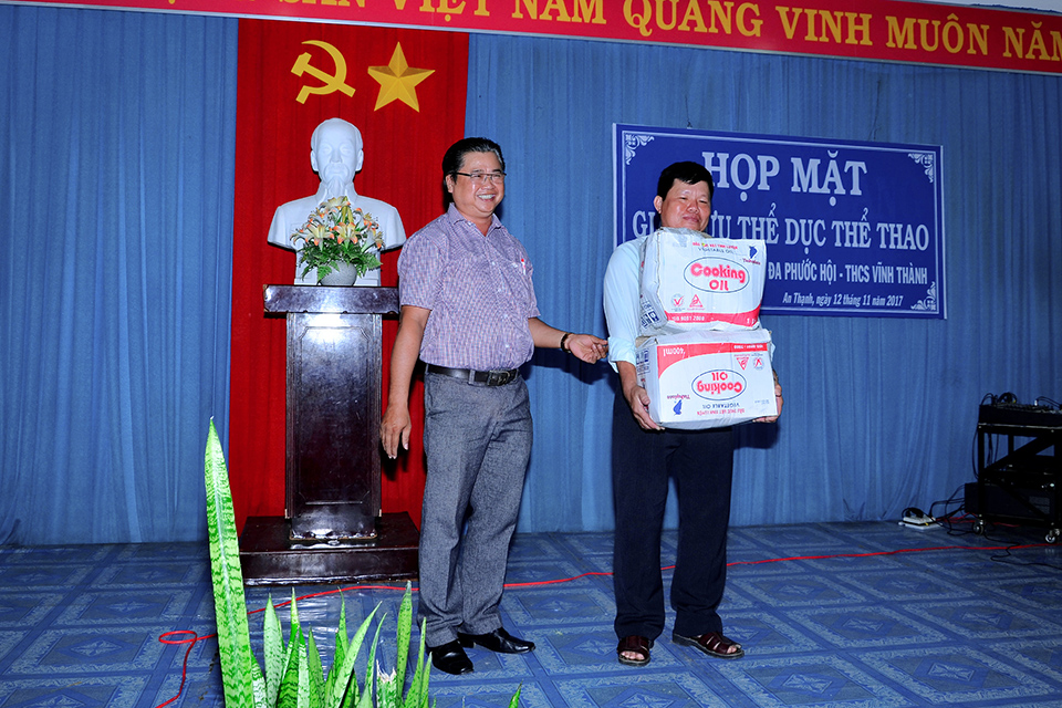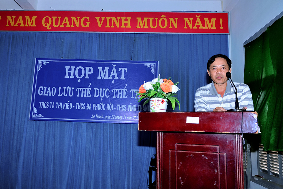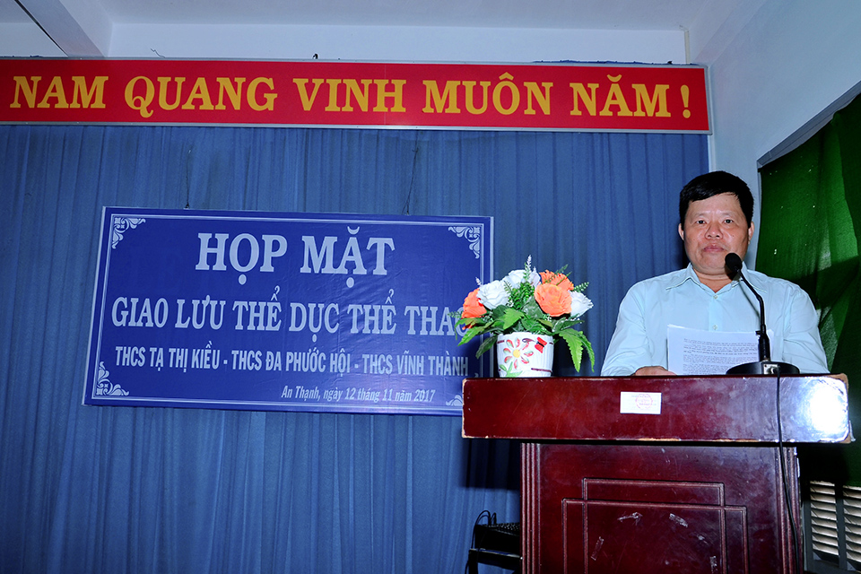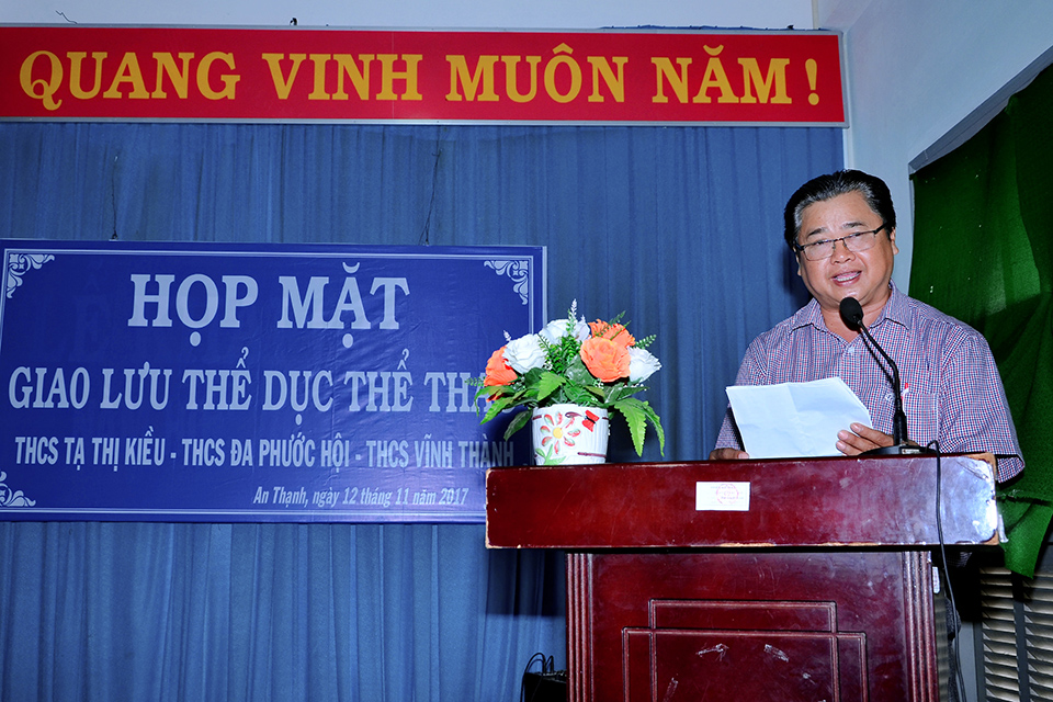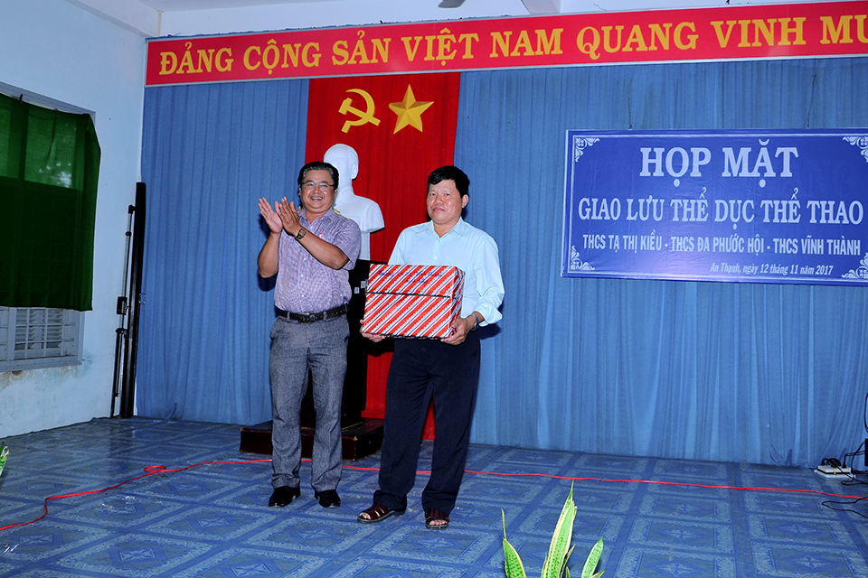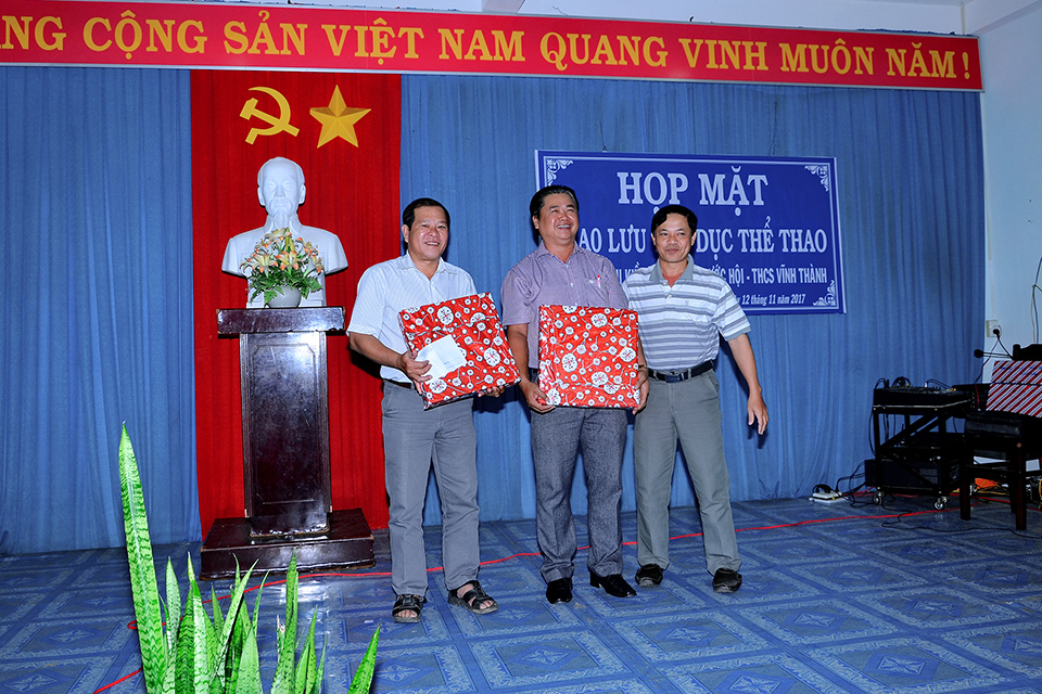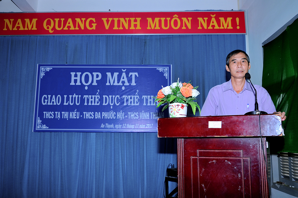 Sáng 12/11/2017, tại trường THCS Tạ Thị Kiều đã diễn ra buổi họp mặt giao lưu thể dục thể thao với sự tham gia của 3 trường THCS Tạ Thị Kiều, THCS Đa Phước Hội và THCS Vĩnh Thành. Trong buổi họp mặt này, đại diện BGH và Công đoàn của 3 trường đã trao nhau những món quà lưu niệm cũng như cùng trao đổi và chia sẻ những kinh nghiệm trong công tác chuyên môn và các hoạt động đoàn thể. Đến trưa cùng ngày buổi họp mặt giao lưu đã diễn ra thành công tốt đẹp. Sau đây là một số hình ảnh của buổi họp mặt này.