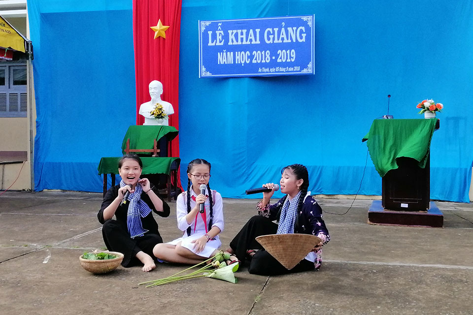 Sáng 05/9/2018, trường THCS Tạ Thị Kiều tưng bừng tổ chức lễ khai giảng năm học 2018-2019. Từ sáng sớm, toàn thể quí khách mời, hội đồng giáo viên và tất cả các em học sinh của trường đã tập trung đông đủ với những khuôn mặt tươi tắn, hân hoan và rạng ngời để cùng nhau thưởng thức các tiết mục văn nghệ do học sinh của trường biểu diễn và đón chào năm học mới.