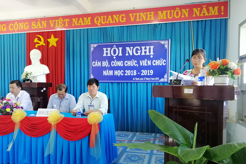 Hoạt động Giáo dục Hội nghị Cán bộ Công chức năm học 2018-2019 TTK 7 năm trước dav Chiều 27/9/2018, tại Hội trường trường THCS Tạ Thị Kiều đã long trọng tổ chức Hội nghị Cán bộ Công chức năm học 2018-2019. Sau đây là một số hình ảnh của Hội nghị. Related posts Trường THCS An Thạnh phấn đấu vươn lên đạt chuẩn quốc gia năm 2013 TTK 12 năm ago Mừng ngày nhà giáo Việt Nam 20/11/2017 TTK 8 năm ago Lễ công bố quyết định đổi tên trường TTK 12 năm ago