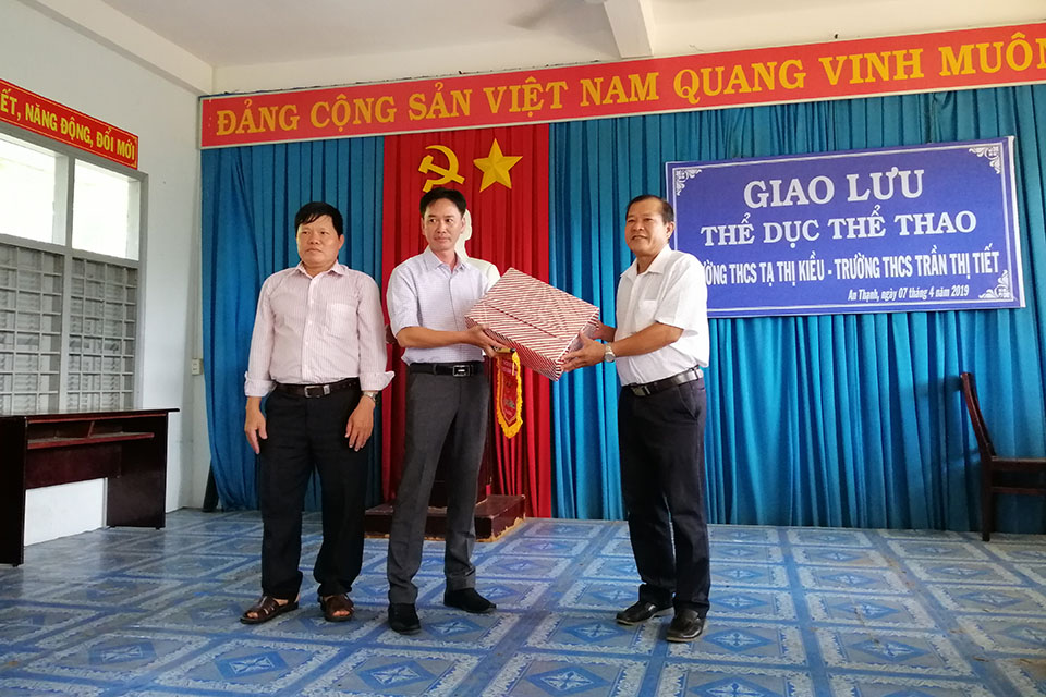 Sáng 07/4/2019, tại trường THCS Tạ Thị Kiều đã diễn ra buổi giao lưu thể dục thể với trường THCS Trần Thị Thiết (Thạnh Phú). Trong đợt giao lưu này, đại diện BGH và Công đoàn của 2 trường đã trao nhau những món quà lưu niệm cũng như chia sẻ, trao đổi những kinh nghiệm trong công tác giảng dạy và các hoạt động đoàn thể. Đến chiều cùng ngày buổi giao lưu đã diễn ra thành công tốt đẹp. Sau đây là một số hình ảnh của buổi giao lưu này.