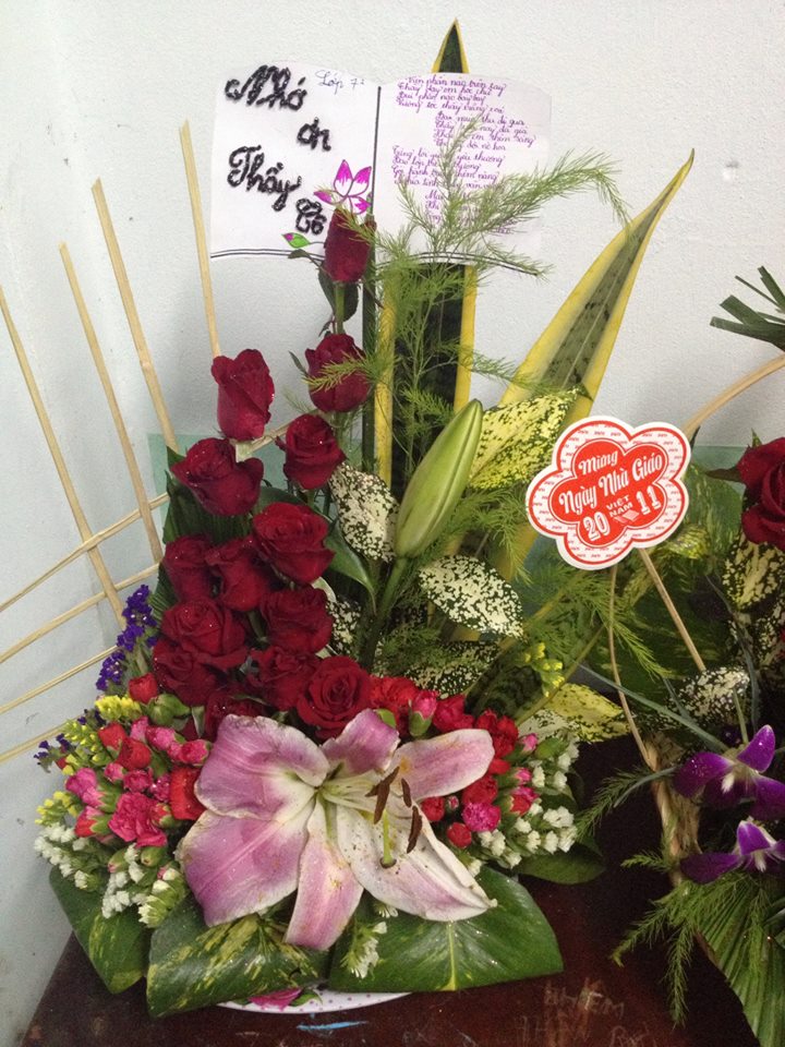 “Nhân kỷ niệm 32 năm ngày Nhà giáo Việt Nam, trường THCS Tạ Thị Kiều chúc mừng tất cả quý thầy cô giáo. Chúc quý thầy cô luôn được dồi dào sức khỏe, có thật nhiều niềm vui, hạnh phúc và thành đạt. Thay mặt cho các em học sinh thân yêu của trường kính tặng quý thấy cô những đóa hoa tươi thắm nhất.”
